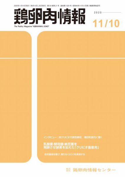 鶏卵肉情報 2020年11月10日号 (発売日2020年11月10日) に掲載されました。