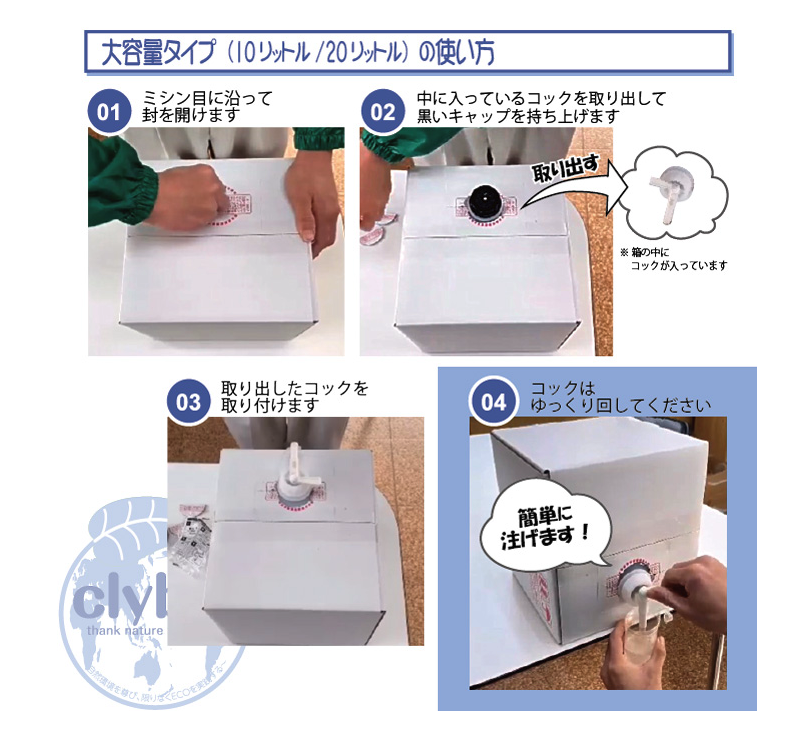 b.消臭・配管詰まり・ぬめりとり・・・排水口に50~100㏄(コップ半杯程度)を流してください。(希釈倍率:原液)